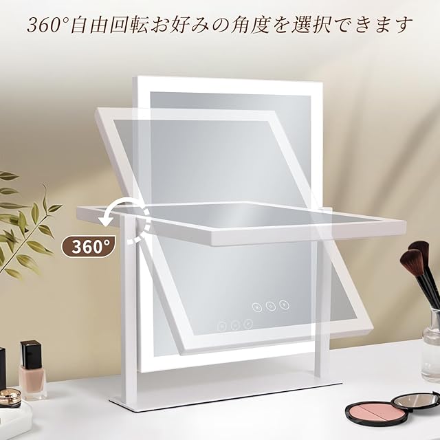 【3種類の調色モード・無段階調光】操作しやすいタッチパネル式でワンタッチでライトのオンオフ切り替えが可能。タッチスイッチ「M」ボタンに触れただけで三色(昼光色・電球色・昼白色)の照明モードを自由に切り替えることができます。更に、無段階調光機能をサポートしており、スイッチを長押しと明るさを自由に調整することができます。 早朝や夕暮れ時の薄暗い時間帯はもちろん、浴室やトイレなど暗い場所でも、顔全体をムラなく均一に照らし、自然なメイクができるよう、ありのままの自分を映し出す照明を実現しました。