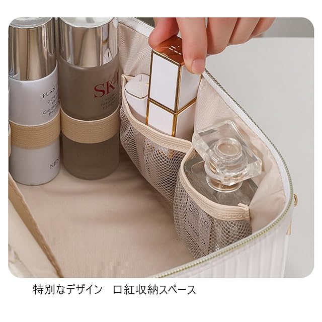 コンパクトで持ち運び可能:広々とした内部にもかかわらず、この化粧品バッグはコンパクトで持ち運びやすいように設計されており、旅行や日常使用に最適です。 洗練されたシルエットはハンドバッグ、スーツケース、ジムバッグに簡単に収まり、どこにでも美容の必需品を持ち運ぶことができます。