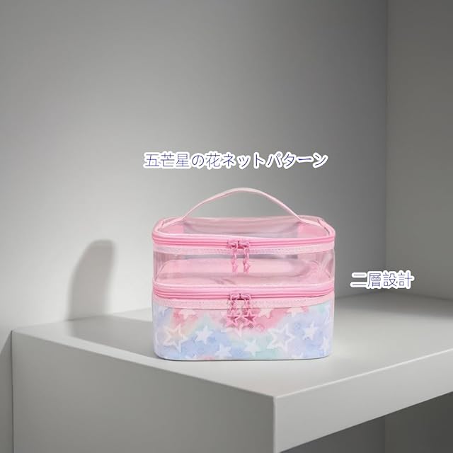 Aylashine グラデーションカラーの絞り染め五芒星の花ネット化粧バッグトイレタリー大容量ハンドヘルドデザイン 二層設計 乾湿分離 多機能 トラベル 旅行化粧ポーチ バニティポーチ トイレタリーバッグ クラッチバッグ 便利 収納 出張 贈り物 (ピンク-二層) | ascend