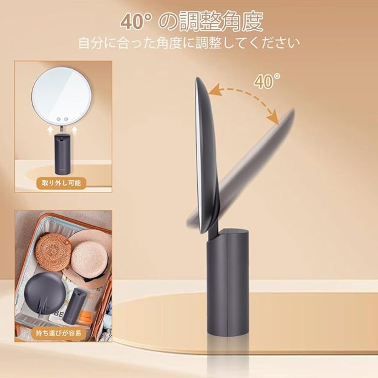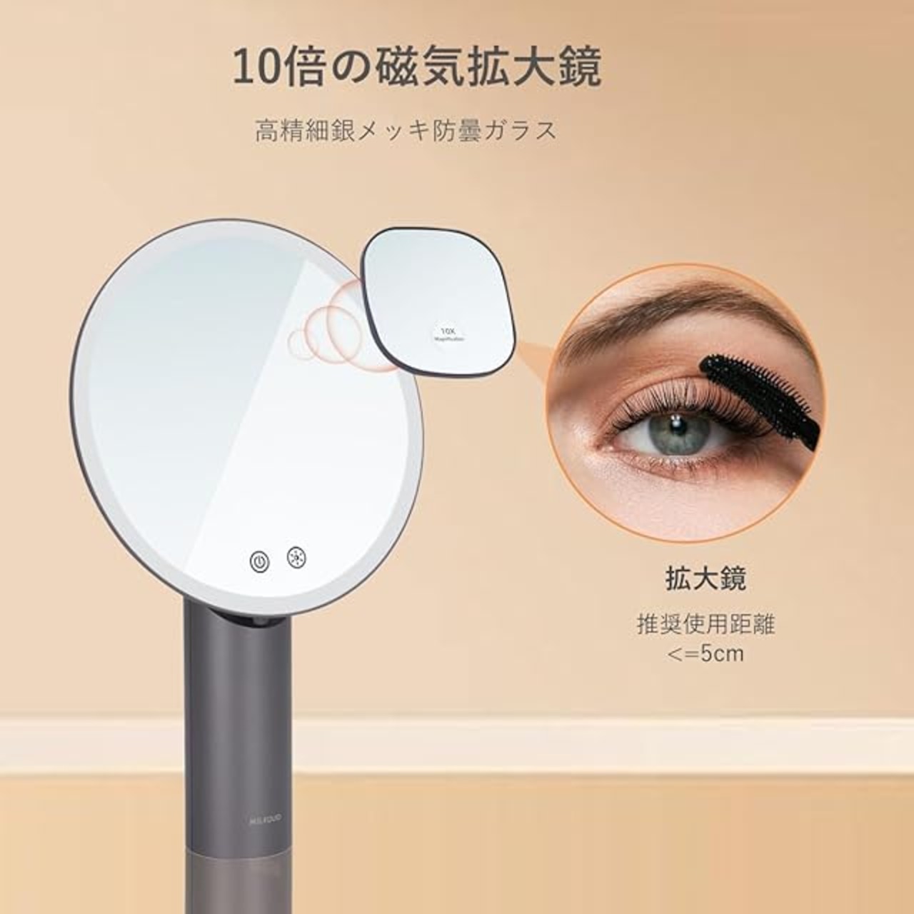 MILEDUO 鏡 化粧鏡 ライト付き 女優ミラー 直径22.5CMスーパークリア化粧鏡 磁気10倍拡大鏡付き 三つ色モード 明るさ調節可能 USB充電 2000mAh大容量 タッチ式 角度調整可能 卓上ミラー スタンドミラー