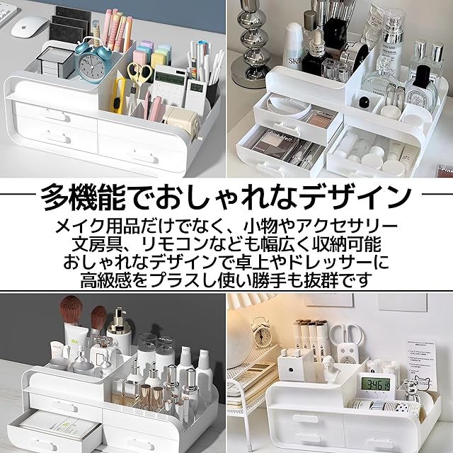 East Leaf メイクボックス 化粧品 収納ボックス 大容量 コスメ 小物 収納 おしゃれ 卓上 [ 引き出しx3 コンパートメントx9 白 ]