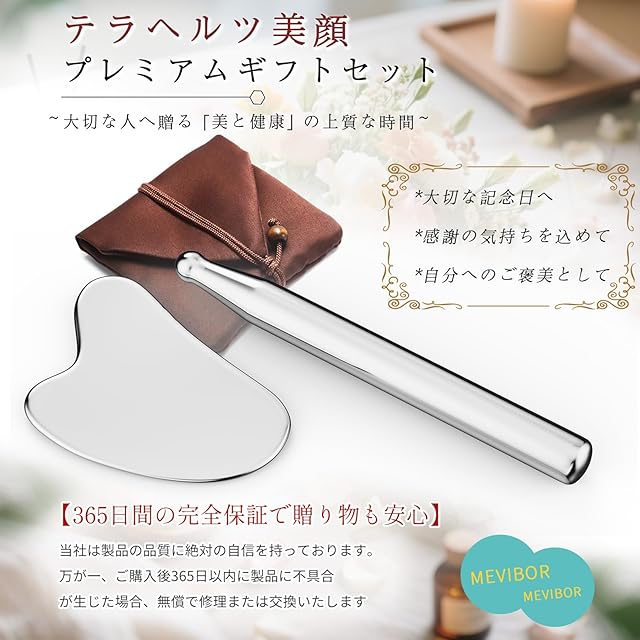 【プレゼントに喜ばれる上品な仕様】高級感のある収納ポーチ付きで、かっさプレートとツボ押し棒が便利に携帯可能。母の日・誕生日・記念日など、大切な方への「健康美ギフト」として大人気です。