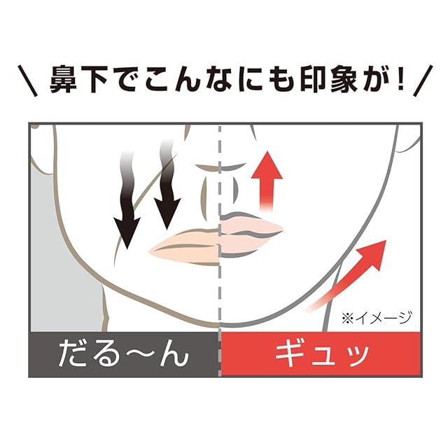 鼻下を鍛えるために開発された本品を鼻と唇の間に挟んで持ち上げるだけ。普段使わない鼻下の筋肉にアプローチし、気になる伸びた鼻下をギュッ!