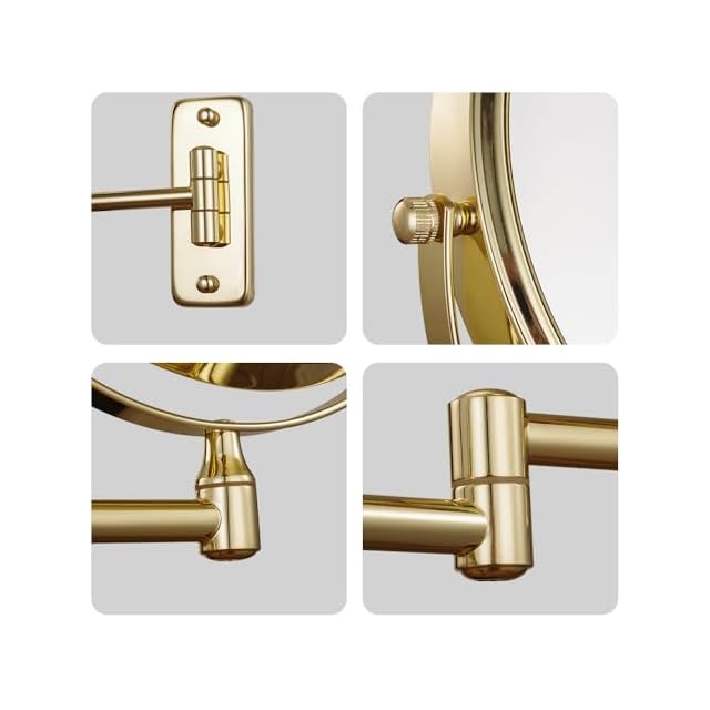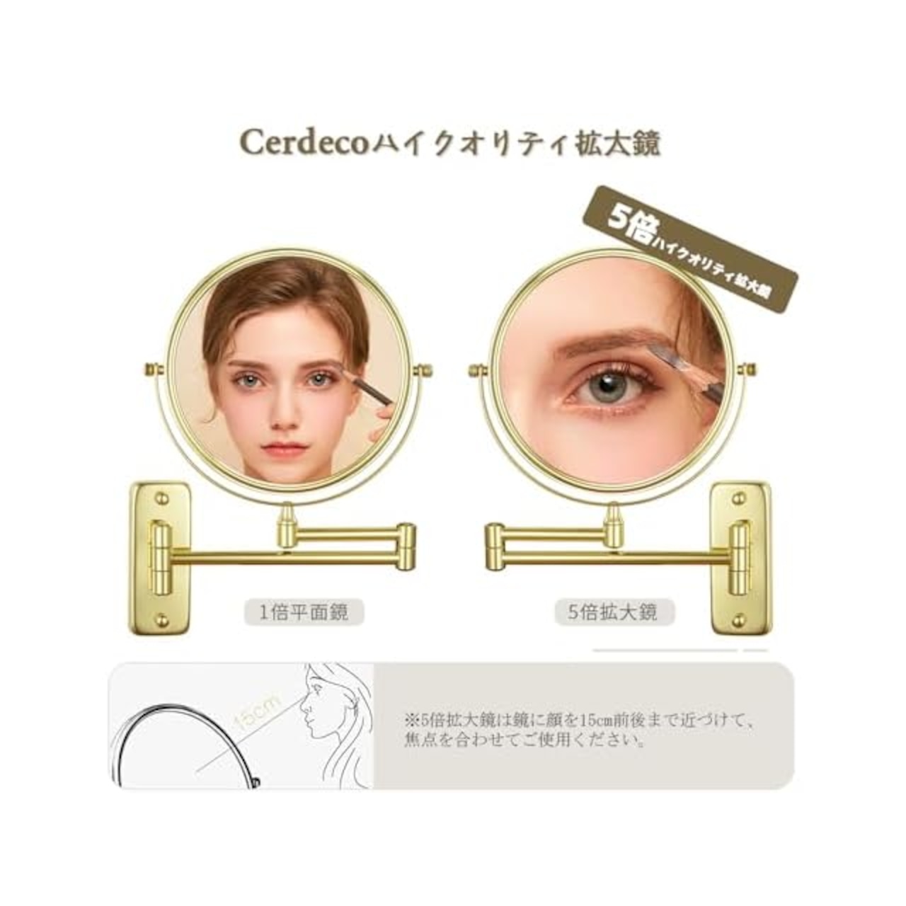 Cerdeco 真実の両面鏡DX 5倍拡大率+等倍 金色洋式アームミラー 伸縮可能 壁付けミラー 両面化粧鏡 360度回転 メイク 化粧道具 折りたたみホテルミラー 洗面所に取り付け ゴールド 鏡面φ200mm J841G | ascend