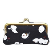 フワフワ真っ白の羽毛で包まれた丸いフォルムに、つぶらな瞳がちょこんと覗く見た目が特徴的な「雪の妖精シマエナガ」が和の小物シリーズになりました♪かわいくて使って癒されるがま口リップケースです☆