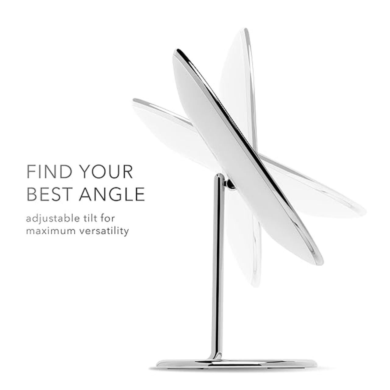 最大限の調整 - 45度の垂直傾きにより、姿勢を見る柔軟性があり、座っているときも立っているときもメイクをすることができます。