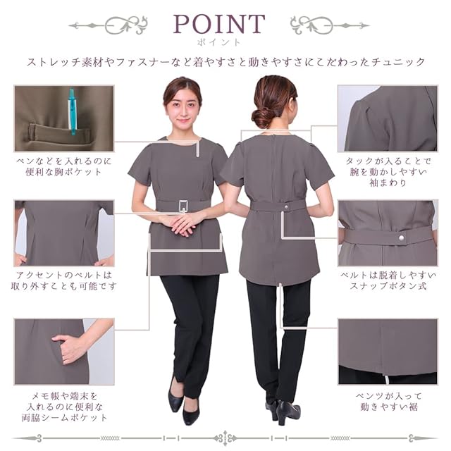 [イーシス] チュニック エステ ユニフォーム 制服 美容 ネイル サロン アイリスト クリニック 背中ファスナー【isis-mach01】 (LL, ドーンネイビー)