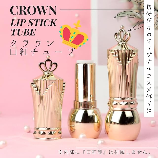 口紅用の可愛いチューブです!豪華な装飾のクラウンデザイン!幅広く使える12.1mmの内径です。初めて手作りコスメにトライする方にもカンタン、ステキにできあがるので嬉しくなります☆