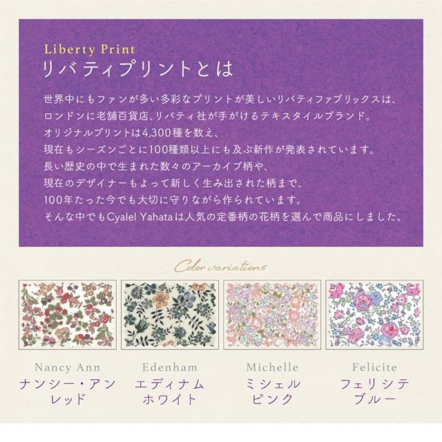 ✅人気のリバティプリント<br> 多彩な花柄のプリントが美しいリバティプリントの生地を使用しました。<br> その中から特にテディベアモチーフに合う上品で可愛い花柄をチョイスしました。<br> かわいらしいベアーモチーフもリバティプリントの生地や英字プリントで大人可愛い雰囲気のデザインに仕上がりました。<br> 世界中から愛されるリバティプリントはファンも多く、ギフトにもおすすめです。<br>