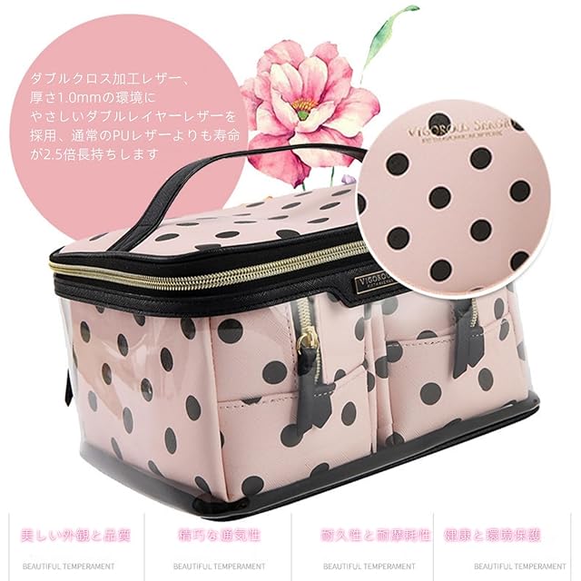 十分な収納スペース: 広々としたマルチポケットのデザインで、乱雑な化粧品に別れを告げましょう。 さまざまなサイズの複数のコンパートメントとジッパー付きセクションにより、美容の武器を整理するのがこれまでになく便利になります。