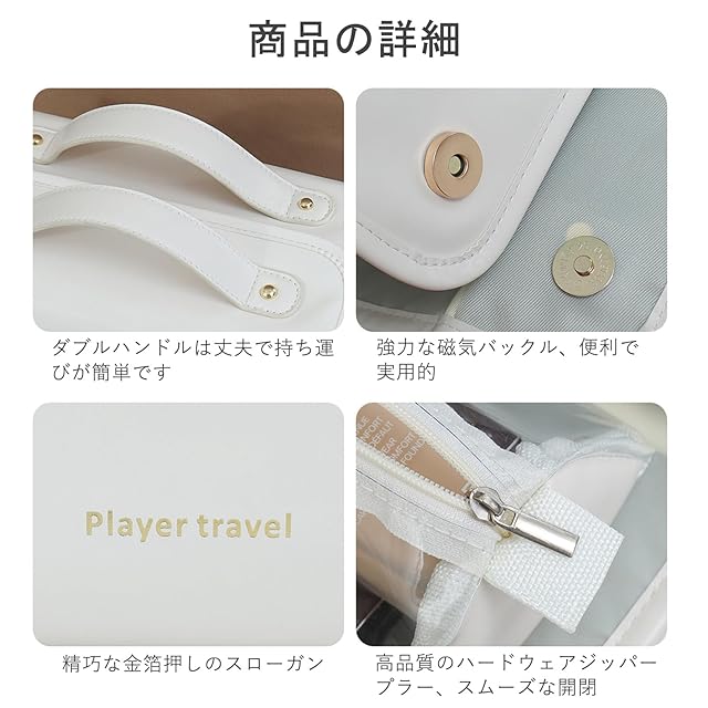 ✅【大容量】サイズ:24*12*12CM(取り外し可能な透明ポケット4つ付き)。シングル透明ポケットのサイズ: 20*10CM。主な素材: PU、PVC。この化粧ポーチは大容量に設計されており、スキンケア製品、メイクアップ製品、化粧品を収納できます。アイシャドウ、チーク、ローション、エッセンス、フェイスクリーム、ファンデーションなどを簡単に収納でき、美容用品を整理整頓できます。