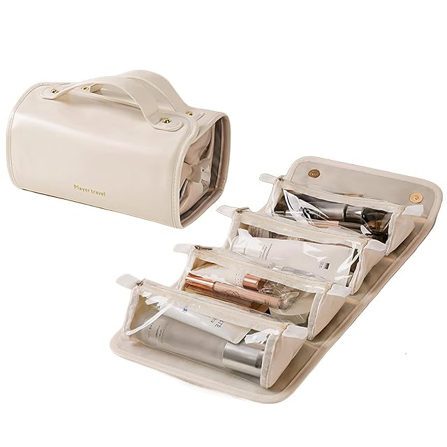 ✅【取り外し可能な透明ポケット】4つの透明な収納袋は、閲覧に便利であるだけでなく、取り外して個別に使用することもできます。この化粧ポーチは革とプラスチックで作られているため、耐摩耗性と耐久性があるだけでなく、防水性もあり、誤って水しぶきがかかっても心配する必要はありません。旅行用でも自宅保管用でも、さまざまなシナリオでニーズを満たすことができます。