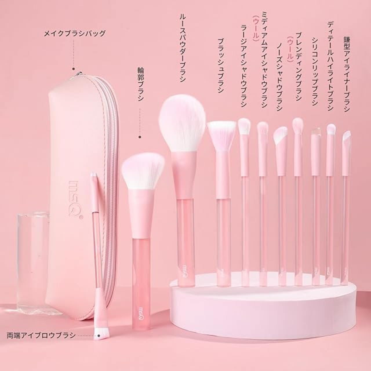 MSQ メイクブラシ 11本セット 小さな幸せの PU収納ポーチ付き 両端アイブロウブラシ 高級繊維毛 化粧筆 アイシャドウブラシシ リコンリップブラシ 携帯用化粧ブラシ 人気プレゼント かわいいブラシセット