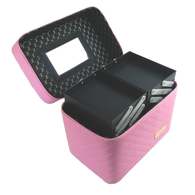 【収納力抜群】サイズ: 28x22.6x18cm 重量: 1.1kg、大容量のデザインで、ネイル用品や普段使いの化粧品など、コスメをスッキリ収納できます。整理整頓が苦手な方でも安心です。忙しい朝でも、すぐに必要なものを見つけることができます。<br/> 【細かい仕分けができる】 大きな化粧水だけでなく、散らばりやすい小物なども細かく綺麗に仕分けられるケースが付属しています。メイク時にも取り出しやすく、快適なメイクタイムを過ごすことができます。<br/> 【高品質素材を使用】 高品質のPUレザー素材を使用しており、長くお使いいただけます。汚れてしまっても、簡単に拭き取ることができます。<br/> 【持ち運びに便利】 ハンドルとファスナーが付いているため、こぼれる心配なく持ち運びができます。外出や旅行にもぴったりです。<br/> 【贈り物にもおすすめ】 目を惹く可愛いデザインで、女性へのプレゼントにもおすすめです。彼女やお嬢さん、奥さんなど、贈られた方々からも大変喜ばれています。