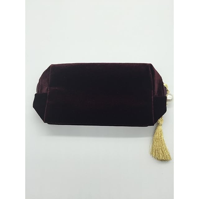 AJMstyle イニシャル ベロア 化粧 コスメ ポーチ 小物入れ フリンジ タッセル パール チャーム 付 【BWS-287】 メイクポーチ ピンク ブラック ベージュ ワインレッド プレゼント ギフト クリスマス 誕生日 記念品 Xmas (ボルドーY)