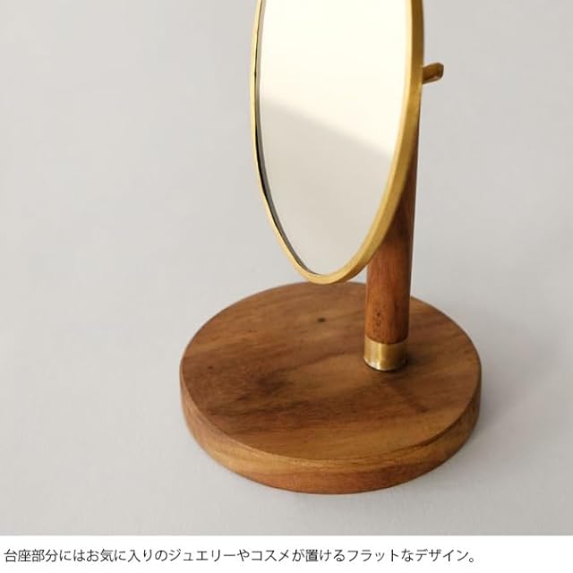 真鍮フレームと木座コンビがおしゃれな卓上ミラー