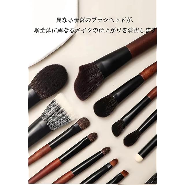 このミニメイクブラシセットは、各ブラシが異なる形状のタイプで用意されているため、顔の各部位に合わせて使用することができ、さまざまな日常のメイクニーズに対応しています。パウダーブラシ:広い面にパウダーをつけ、素早くメイクを仕上げるのに便利なブラシです。ポイントブラシ:細い羊毛のブラシ先端が柔らかく、粉を吸わないため、部分的にパウダーを塗るのに適しています。斜めカットコンターブラシ:斜めにカットされたブラシ形状で、顔にフィットしやすく、柔らかくコンターをぼかします。ハイライトブラシ:眉骨や鼻筋、頬骨などの細部を明るくするのに適しています。アイシャドウブラシ:アイシャドウや鼻の影を自然にぼかすのに使用します。斜めカットアイシャドウブラシ:目のくぼみにフィットし、立体的な鼻を作り上げるのに適しています。アイシャドウベースブラシ:目元のベースを作り、きれいなアイシャドウの下地を簡単に塗り広げます。アイシャドウ大面積塗りブラシ:アーモンド型のブラシヘッドで、広範囲にアイシャドウを塗り広げ、簡単にメイクを仕上げるのに役立ちます。アイシャドウ涙袋ブラシ:フレーム型のブラシヘッドで、細かな目頭の部分と涙袋を明るく引き立てるために使用します。丸い先端のリップブラシ:密集した羊毛で、口紅やリップグロスなどをぼかすためのブラシです。コンシーラーブラシ:平らなブラシヘッドで、顔のシミやそばかすなどを正確にカバーするのに使います。斜角眉ブラシ:斜めにカットされたブラシヘッドで、一筆で精巧な眉の形を描きます。黒いジッパーポーチが付属しており、12本のメイクブラシを収納できますが、他の小さなブラシも収納可能です。持ち運びに便利で、ポケットに収まる美容ブラシセットです。