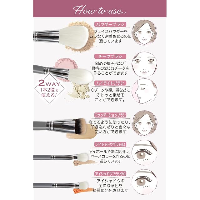 【粉含みのよい毛質とお手入れがしやすい毛】人工毛(ナイロン製)を使用。粉飛びが少なく、豊富に粉を含み、肌へのせることができます。パウダーやクリーム状、液体状に使え、お手入れは、ぬるま湯での洗い流しやメイク専用洗剤などで奥まですっきり洗い流せ、タオルドライ後、陰干し乾燥することができますので、清潔に永くお使いいただけます。