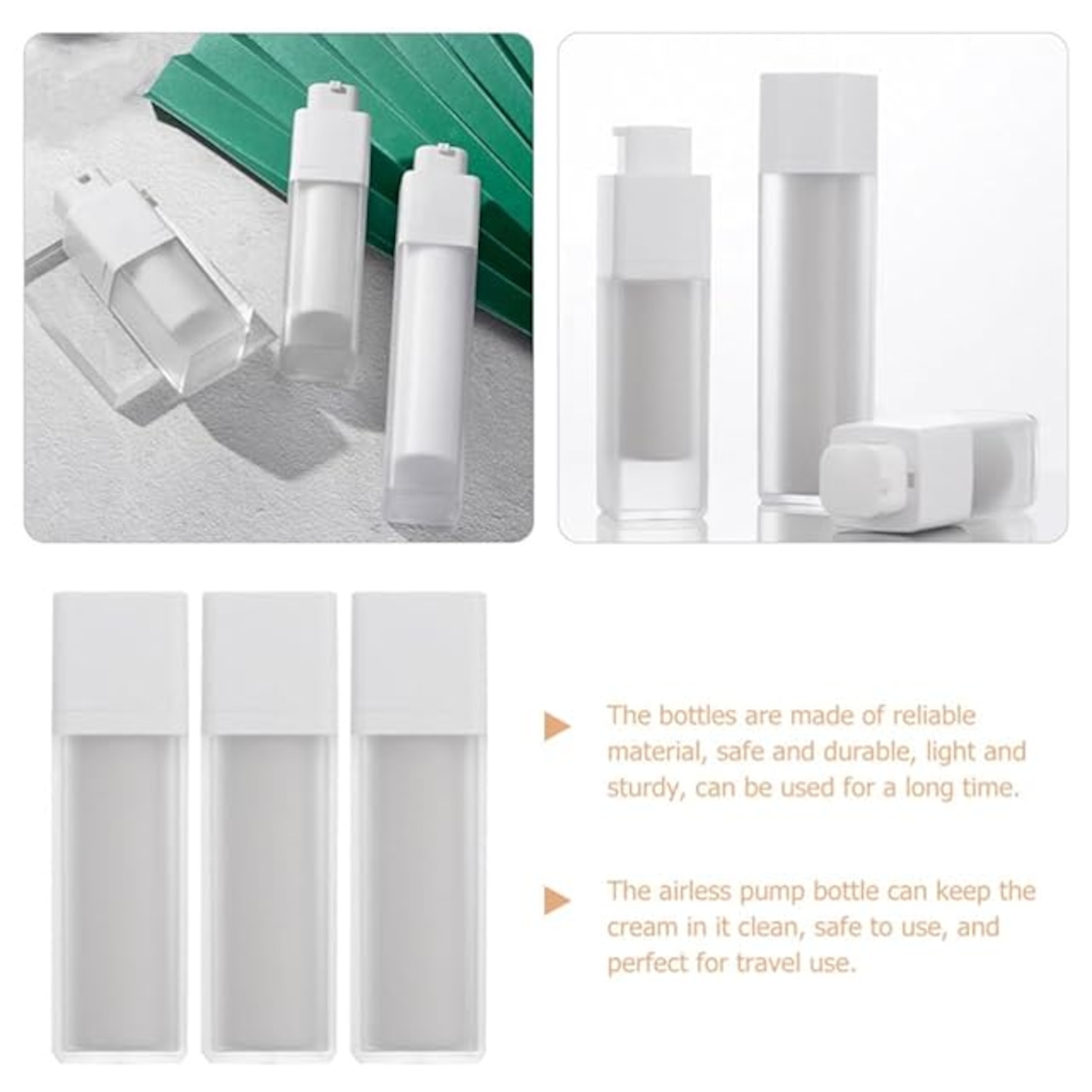 LIOOBO 真空ボトル 50ml 3本入り スクラブ乳液真空ボトル ポンプボトル サブボトル 小分けボトル 四方アイクリームボトル 旅行用品 旅行ボトル 詰め替えボトル 乳液用(50ml 3本)