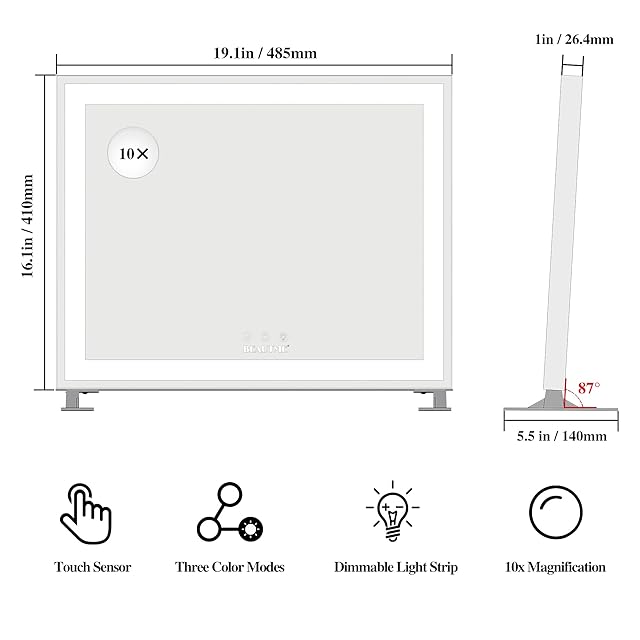 【サイズ & 10倍拡大鏡】ハリウッドメイクアップミラーのサイズは60 x 50.7cmで、メイク、ヘアスタイル、ジュエリー、服が一致しているかどうか見せるのに十分な大きさです。 さらに、付属の10 x 拡大鏡は、詳細を確認したり、メイクしたり、肌を洗うのに役立ちます。