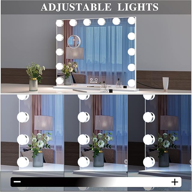 3つのライトモードと明るさ調整可能:女優ミラーには16個の調光可能な電球があり、暖かい光、自然光、冷たい光に調整できます。 さまざまな明るさレベルを選択することもできます。 ライト付きミラーは寝室、更衣室、パウダールーム、美容室などに適しています。