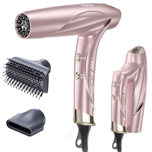 llano カーリングドライヤー 大風量 サロン級 爆風 ブローブラシ付き ストレート ボリュームアップ 速乾 ヘアドライヤー 中和イオン&温冷循環送風 コンパクト 高速 ドライヤー 折り畳み式 家庭用 旅行用 1400W PSE認証済み TR57658(Pink) | ascend