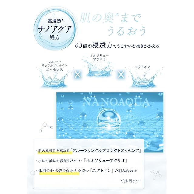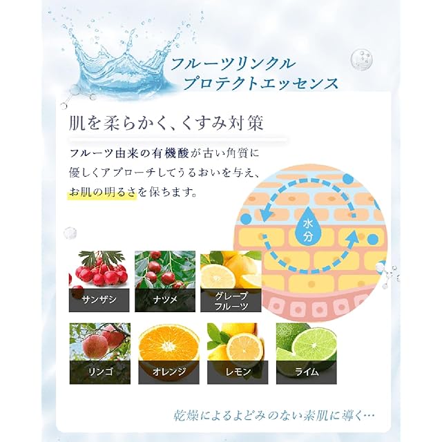 【高浸透ナノアクア処方で肌の奥まで潤う】フルーツリンクルプロテクトエッセンス/ネオソリューアクリオ/エクとインで63倍の浸透力で肌に潤いを届け、肌を柔らかくし年齢を感じさせない翌朝会いたかった肌に。