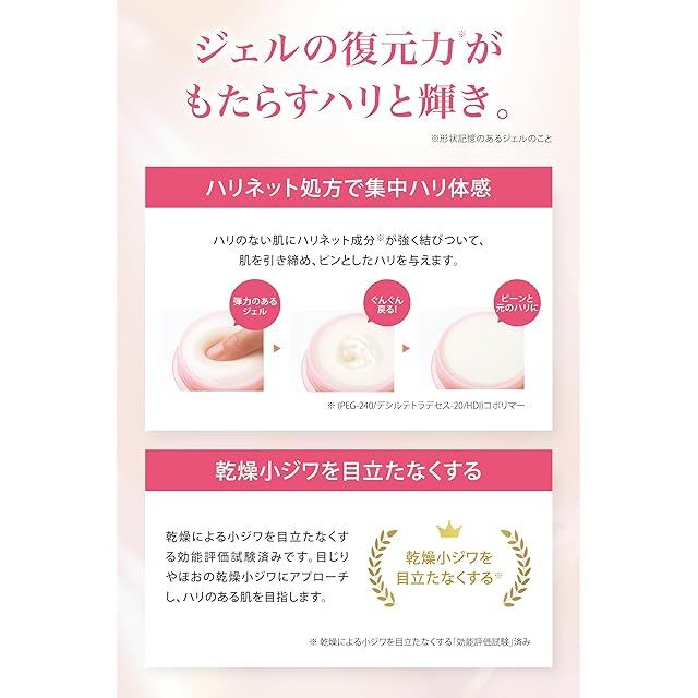 ✅【10 秒でピーン*】これひとつで、エイジングケア*が叶います。ジェルの復元力*がもたらすハリと輝きで、思わず触りたくなるもっちりツヤ肌へ。 ※形状記憶のあるジェルのこと ※年齢に応じたケア