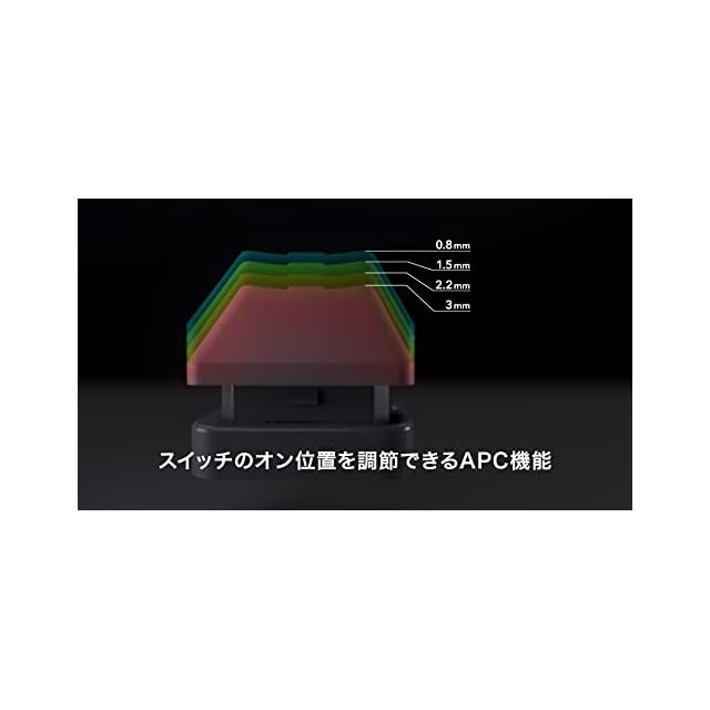 【APC機能】 キーのオン位置を0.8、1.5、2.2、3mm の4 段階で調節可能。様々なシーンに合わせて設定することが可能です。