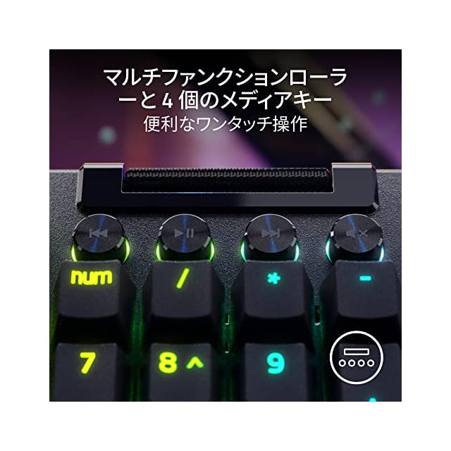 Razer(レイザー) BlackWidow V4 Pro JP Green Switch 追加のマクロキーやライティングなど様々なカスタマイズでゲームから日々の作業までこなせるゲーミングキーボード コマンドダイヤルと8つの専用マクロキー搭載 アンダーグロー Chroma RGB 日本語配列 ブラックウィドウ ブイフォー プロ ジェイピー グリーン | ascend
