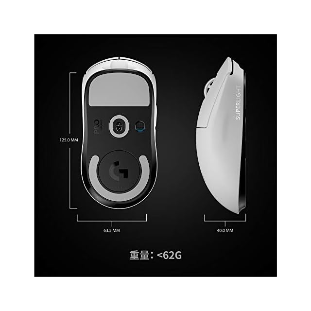 【ロジクールG史上最軽量のワイヤレスゲーミングマウス】驚きの63g未満の超軽量、GPROゲーミングマウス(80g)より更に25%軽量化され、新しいGPROは PRO X SUPERLIGHTの名を冠した。