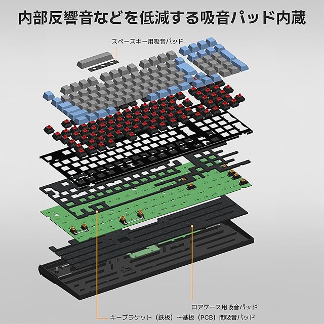 1.5mm厚でロープロファイル仕様のPBTダブルショット(2色成形)キーキャップ標準装着