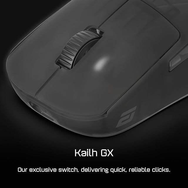 超低遅延のメカニカルスイッチ「Kailh GX」:メインボタンには、Endgame GearとKailh社が共同開発した「Kailh GX」を搭載。接点が2つに分かれているSPDT構造により、超低遅延の「GX スピードモード」、「GX セーフモード」を選べる。※モード変更は専用ソフトウェアで行ってください。 業界をリードする低遅延技術:ワイヤレスマウスの業界水準を押し上げる、平均310マイクロ秒以下のクリック遅延を実現。「GX スピードモード」にするとさらに1ミリ秒速くなり、ゲームの重要な場面で強力なアドバンテージに。さらに、モーション遅延を平均400マイクロ秒以下に効率化し、静止状態からの動き出しが高速に。