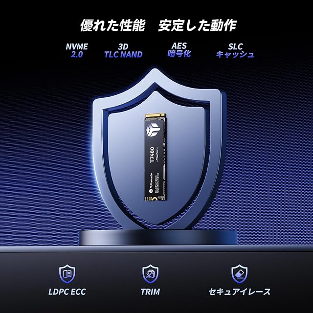 【高度な機能】SLCキャッシュ、ホストメモリバッファー(HMB)、エラーコレクション、データ保護などの高度な機能を搭載し、確実な動作を保証します。TRIMコマンド、セキュアイレース、RAID機能などもサポートしており、最新技術に対応しています。
