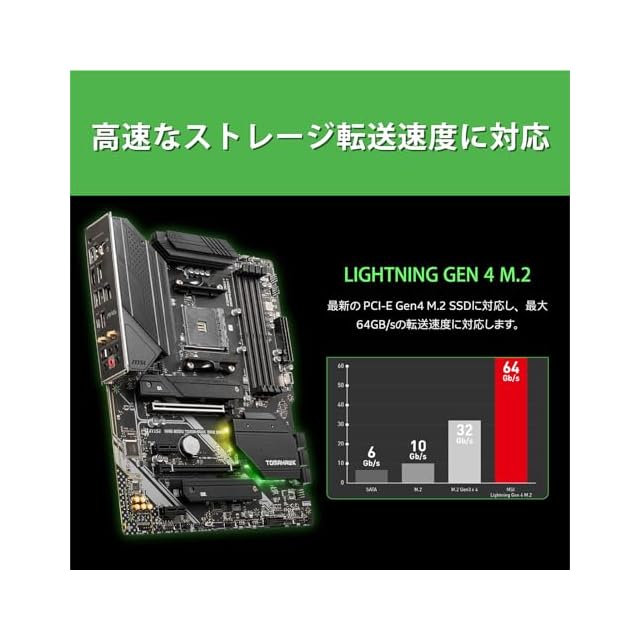 AMD Ryzen5000/4000/3000シリーズに対応、コストパフォーマンスに優れたCPU・APUとPCIE4.0デバイスにより、フルHDレベル・高フレームレートPCの構築に最適なマザーボードです。