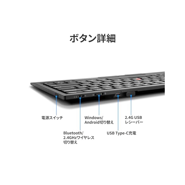 トラックポイント搭載。Bluetooth 5.0または2.4GHz ワイヤレスUSBレシーバーの2つの接続に対応したワイヤレスキーボード。