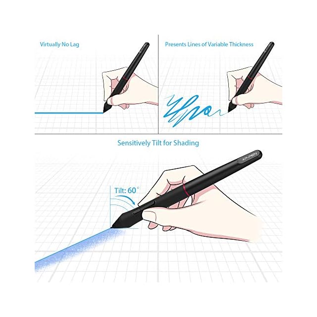 【傾き検知】筆圧8192レベル、傾き検知ペン機能搭載、より高い追従性能を実現。 ペンのグリップ部分がゴム素材で持ちやすい。