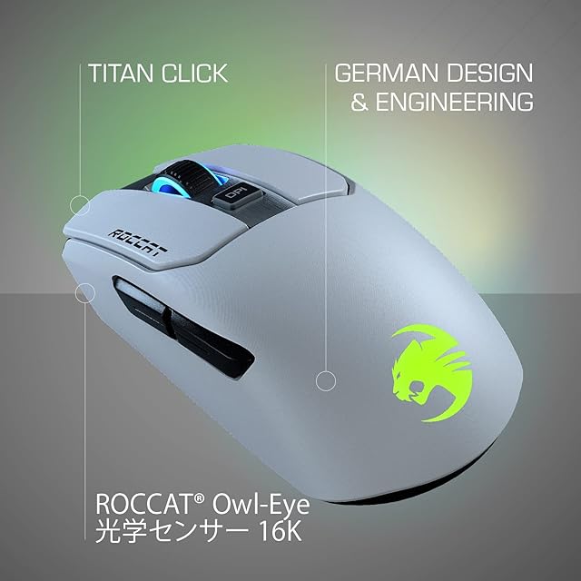 ROCCAT Kain 202 ワイヤレス Titanクリック RGB ゲーミングマウス (光学式 Owl-Eye 16K, サイドボタン, 無線) ホワイト (国内正規品) ドイツデザイン&エンジニアリング ROC-11-615-WE | ascend