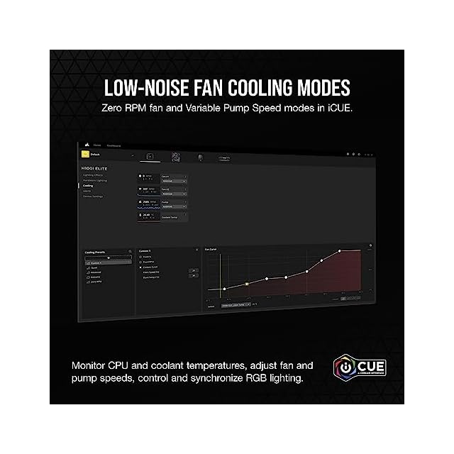 iCUE におけるゼロ RPM ファンモードと可変ポンプ速度冷却モードにより、システムをアイドリングしたり、軽い負荷にかけたりしているときにノイズを最小限に抑えます。