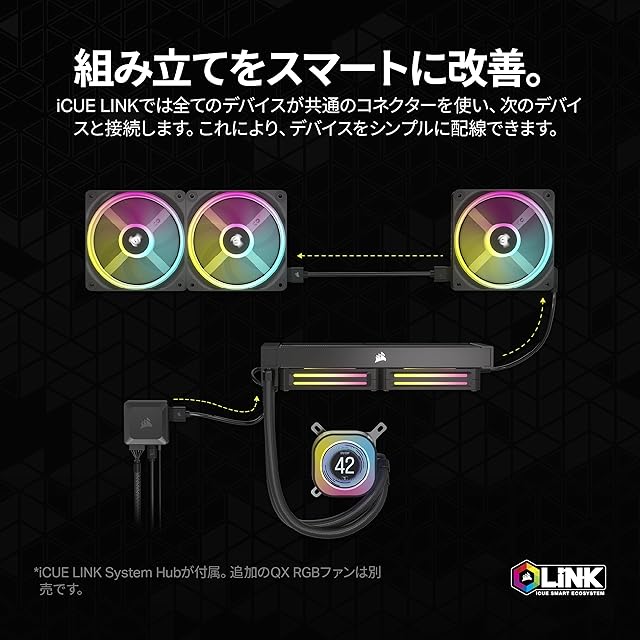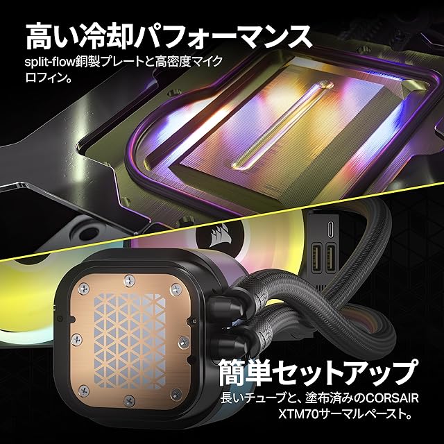 CORSAIR iCUE LINK H100i LCD AIO 水冷式 CPU クーラー - 【QX120 RGB ファン/IPS LCDスクリーン付き】 - 240mm ラジエーター Intel LGA 1700、AMD AM5 に対応 - iCUE LINK システムハブ付属 ブラック CW-9061007-WW | ascend