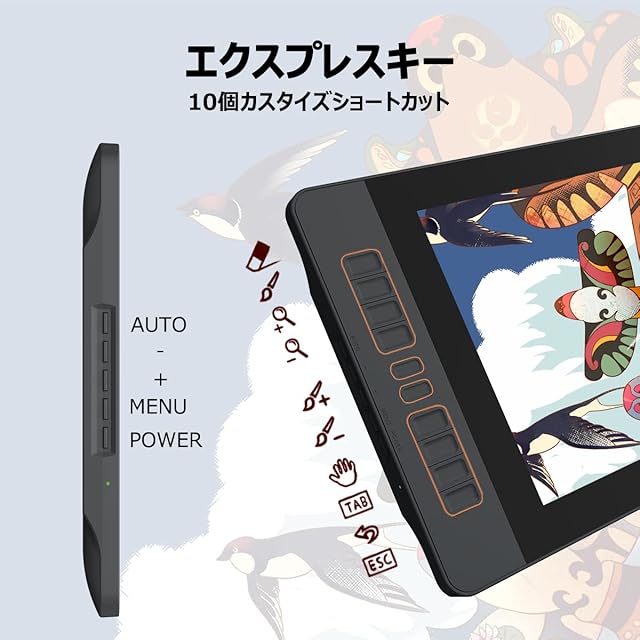 [ 10ショートカットキー&5メニューキー ]--PD1561の左側にある10個のショートカットキーと2個のペンボタンは、あなたの習慣に基づいてズームイン/アウト、上下スクロールなどの機能に設定できます。[ 5メニューキー]--ディスプレイの左側面に置かれます:AUTO / + / - / MENU / POWER ここから、色、明るさ、コントラストなどを調整することが可能です。[HDMIインターフェース]-HDMIインターフェースを採用して信号を転送します。 デスクトップを使用する場合は、マザーボードに接続する代わりに、HDMIケーブルをグラフィックカードに直接接続してください。