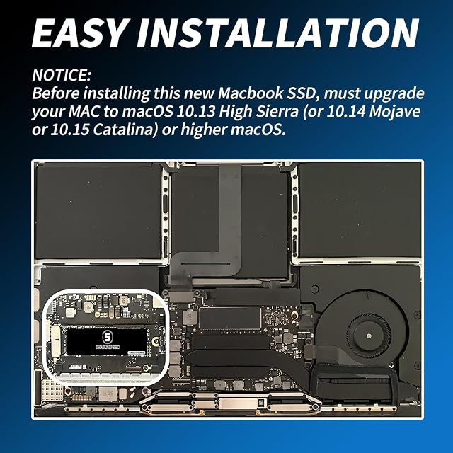 【重要なお知らせ】このMacbook SSDを取り付ける前に、MacをmacOS 10.13 High Sierra (または10.14 Mojaveまたは10.15 Catalina)以降のmacOSにアップグレードする必要があります。 これらのOSバージョンには、Mac用のEFIファームウェアアップデートが含まれています。 アップデートしないと、新しいSSDは認識されません。