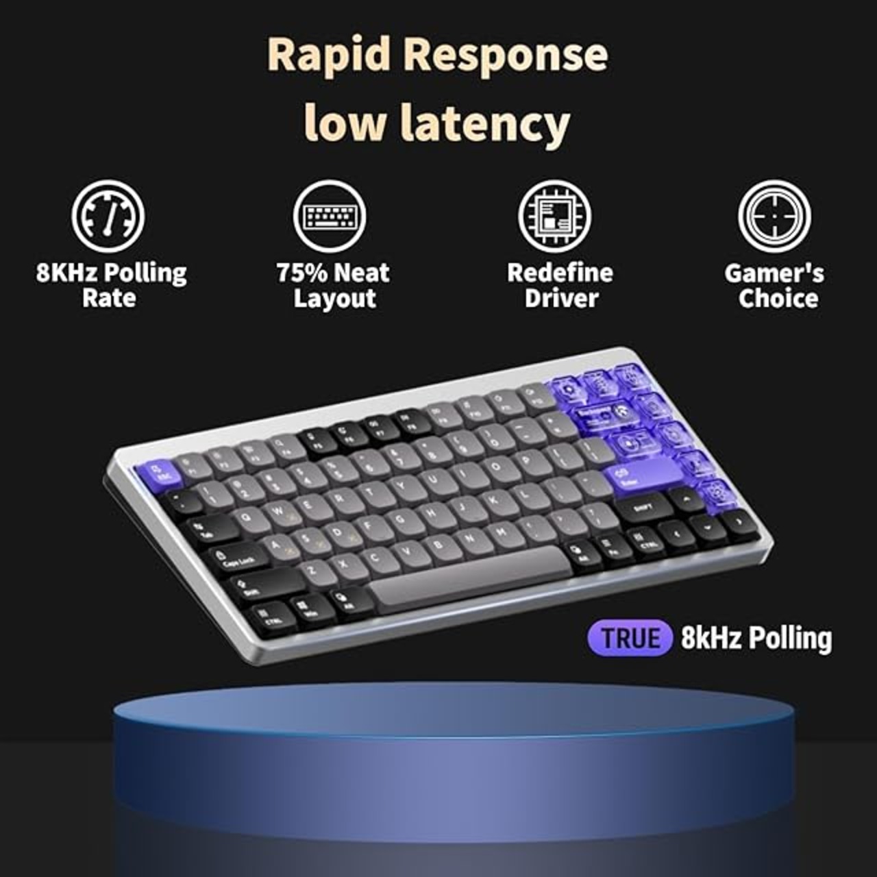 【低遅延で高速応答】Air75 HE磁気スイッチキーボードは、ポーリングレート8000HzとPCBスキャンレート8000Hzの両方を備えています。 レイテンシーはほとんどの8000Hz磁気スイッチキーボードよりも大幅に低く、応答時間は従来のゲーミングキーボードよりも50倍高速です。