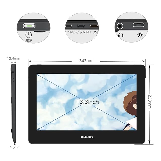 【ANDROIDへ接続時要件】-AndoridデバイスがUSB3.1およびTNTモードをサポートしていることを確認します。 すべてのAndroidデバイスがTNTモードをサポートしているわけではありません。 【軽量で持ち運び可能】-わずか0.88kg、 旅行に持ち出すのに可能です。特にAC電源プラグなしで直接コンピュータから電力を供給できます。 【ペンホルダー&ペン先8本】-ペンホルダー内に交換用ペン先8本を入れています。