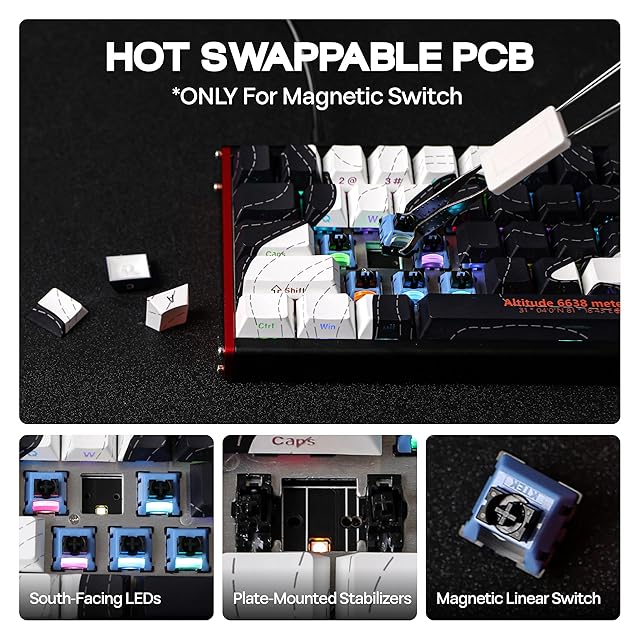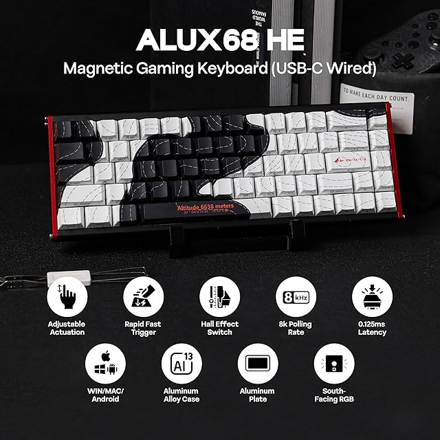 MechLands AJAZZ ALUX68 HE アルミニウム ラピッドトリガー搭載 ゲーミングキーボード 磁気スイッチ USB-C有線ホール効果キーボード 8Kポーリングレート 0.125msレイテンシー RGBバックライト付き (ブラック Topographic, ALUX68 MAX) | ascend