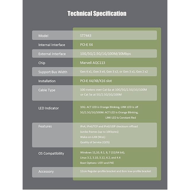 GLOTRENDS ST7443 10Gb RJ45 イーサネット・ネットワーク・カード、Marvell AQC113 コントローラ、PCIE 4.0 X1/3.0 X4 インターフェース、Mac OS/Windows/Linux/ESX 対応 | ascend