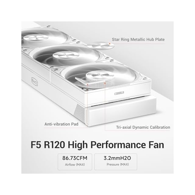 【高性能ラジエーター&静音ファン】 396mmのラジエーターと3つのCPS F5 R120 120mmの強力な冷却ファンを搭載し、360mmラジエーターと共に、CPUの熱を迅速に放散しながら、静音AIO液冷として静かに動作します。これにより、冷却性能と静音性を両立します。