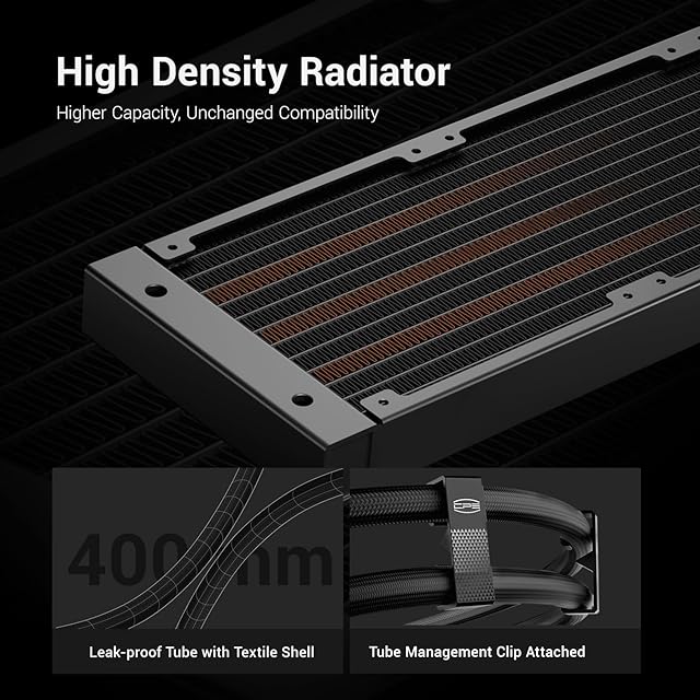 【高性能360mmラジエーター】 大型の360mmラジエーターと高効率の銅製コールドプレートにより、優れた熱伝導性と冷却性能を実現。長時間の高負荷作業でも安定したパフォーマンスを維持します。