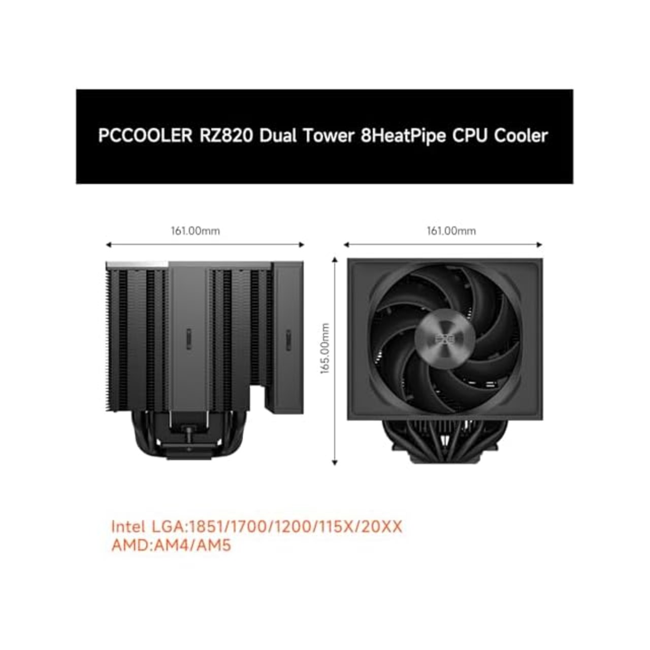 PCCOOLER CPS RZ820 CPUクーラー、290WデュアルタワーCPUエアクーラー、8ヒートパイプCPU冷却ファンシステム&3モードPWMサイレントファン、インテルLGA 1851/1700/1200/115X/20XX、AM4/AM5(RZ820 BK)用エアクーラー | ascend