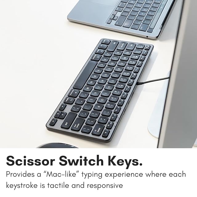 MACALLY 小型キーボード Mac用 USBハブ付き (USB-C2個 / USB-A1個) 3ポート付き 有線 2 in 1 USB C+A プラグ コンパクト テンキー無し MacBook Pro/Air,Mac Mini, iMac のスペースを節約するのに最適な(78キーレイアウト)-スペースグレー(UCAMINIZHUB)US配列 | ascend